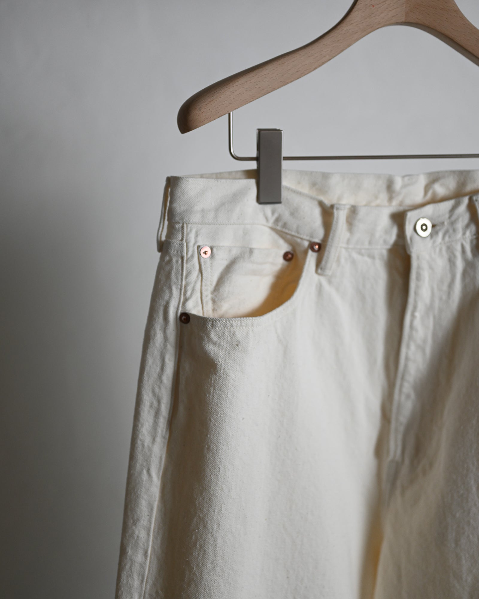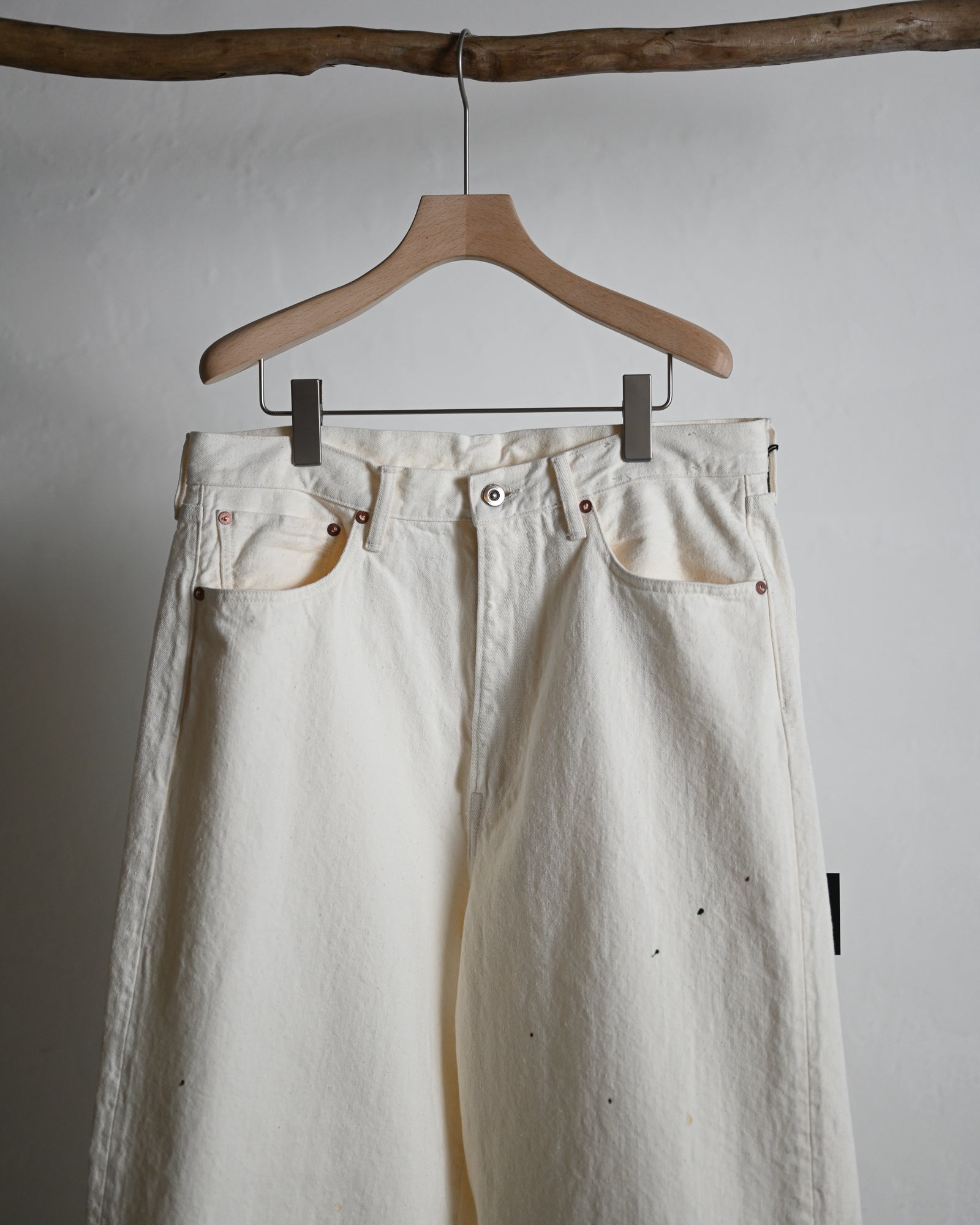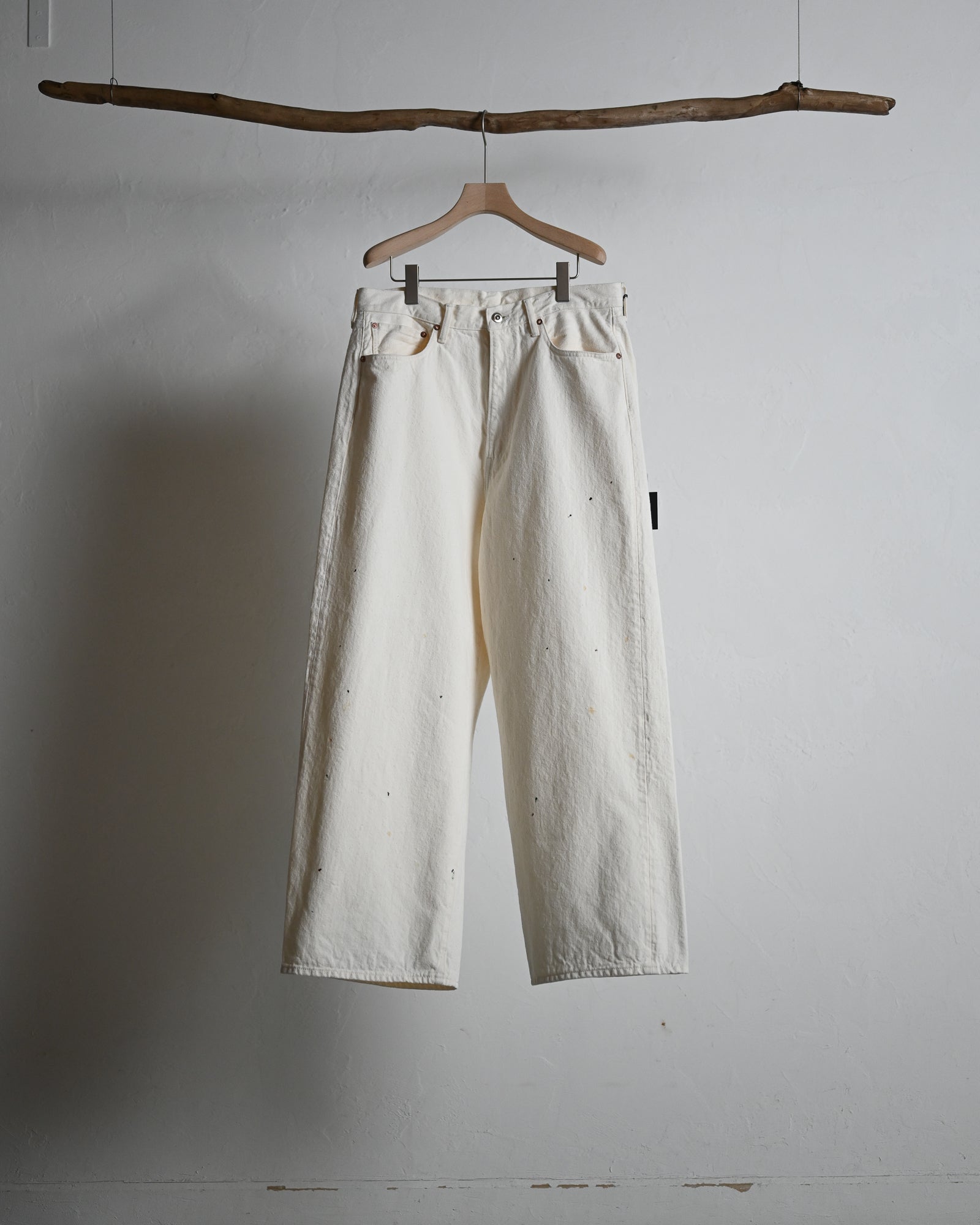 5POCKT BAGGY PANTS, raw denim fade white