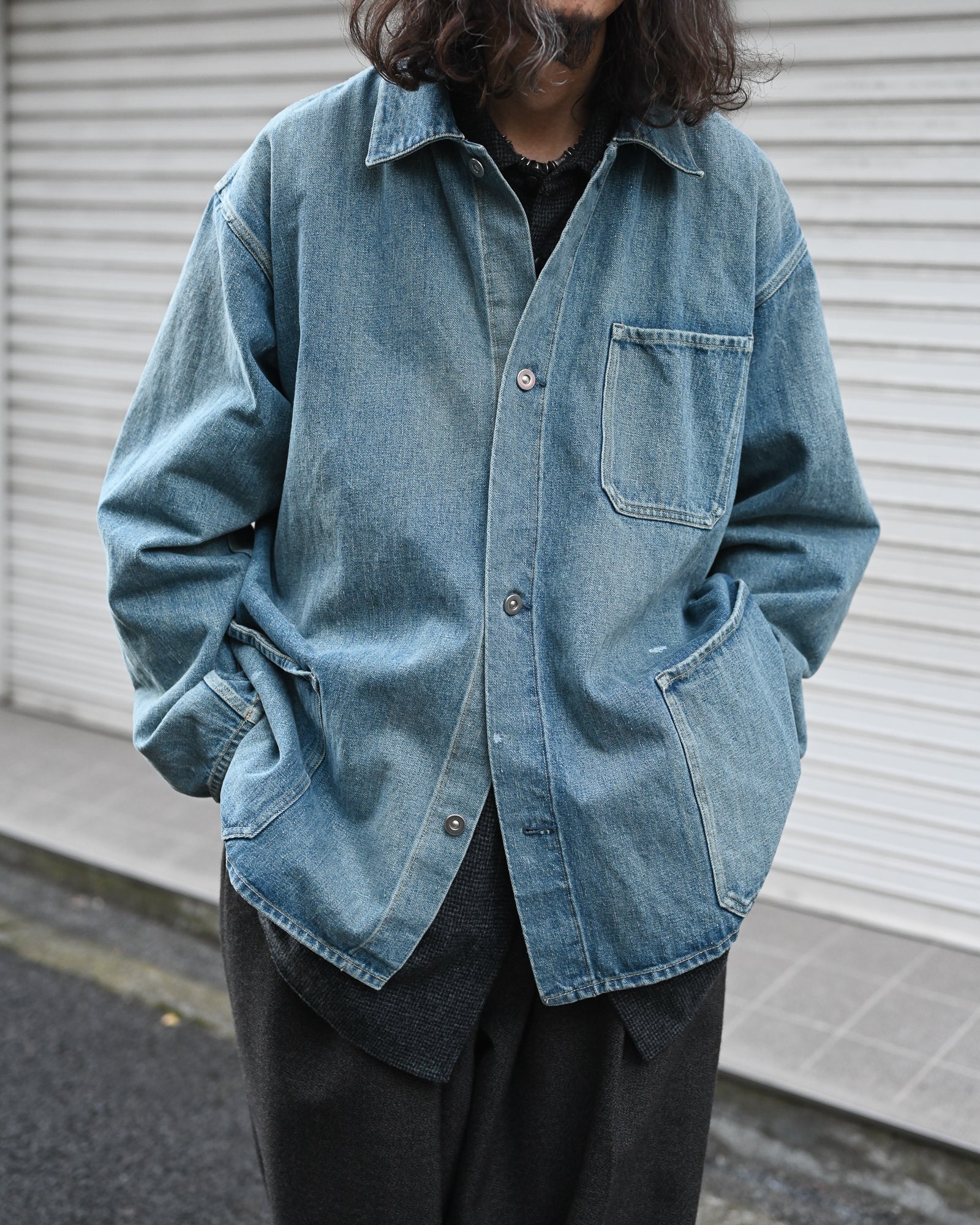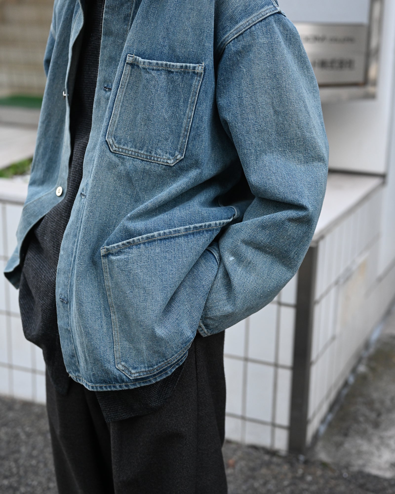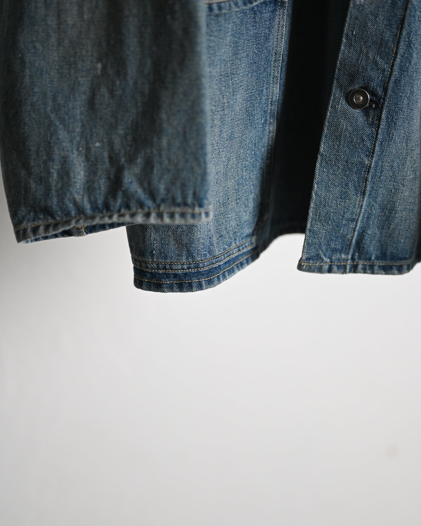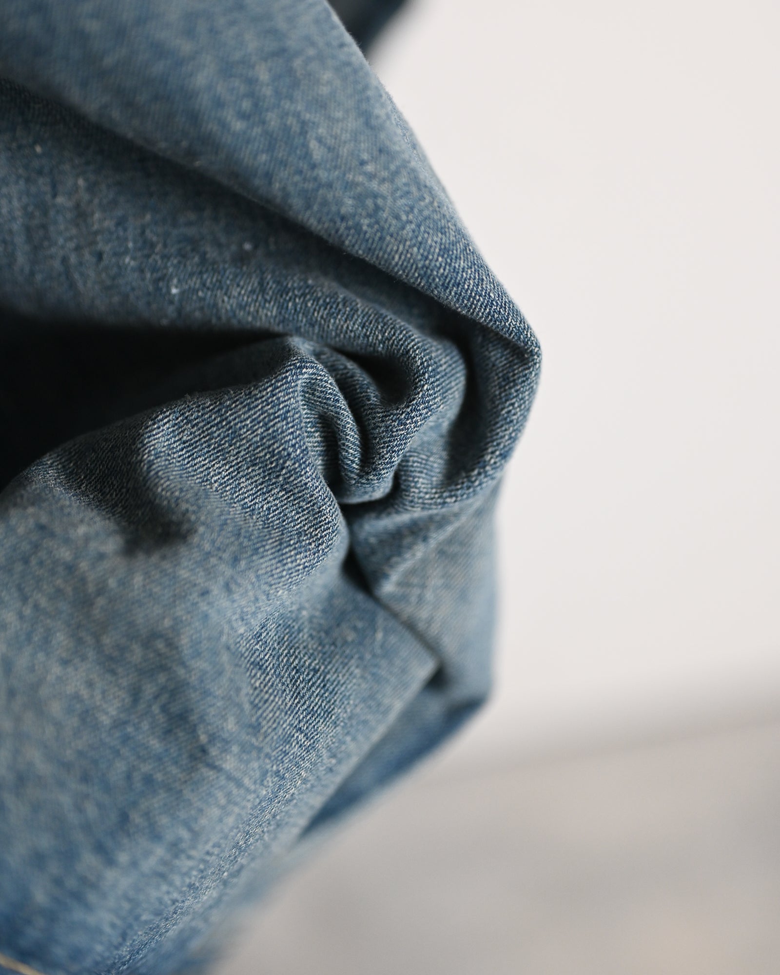 縫製後、水洗いや防縮加工を含めた仕上げが一切施されていない生機デニムのため、経年変化も楽しみなテキスタイルです。