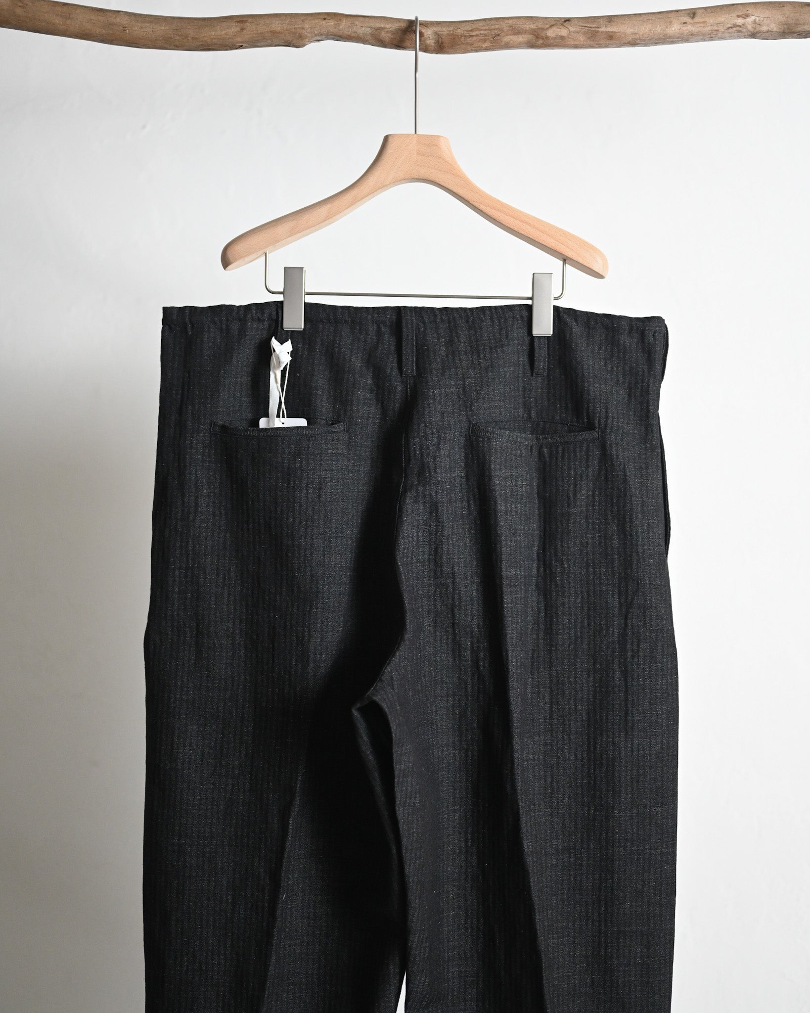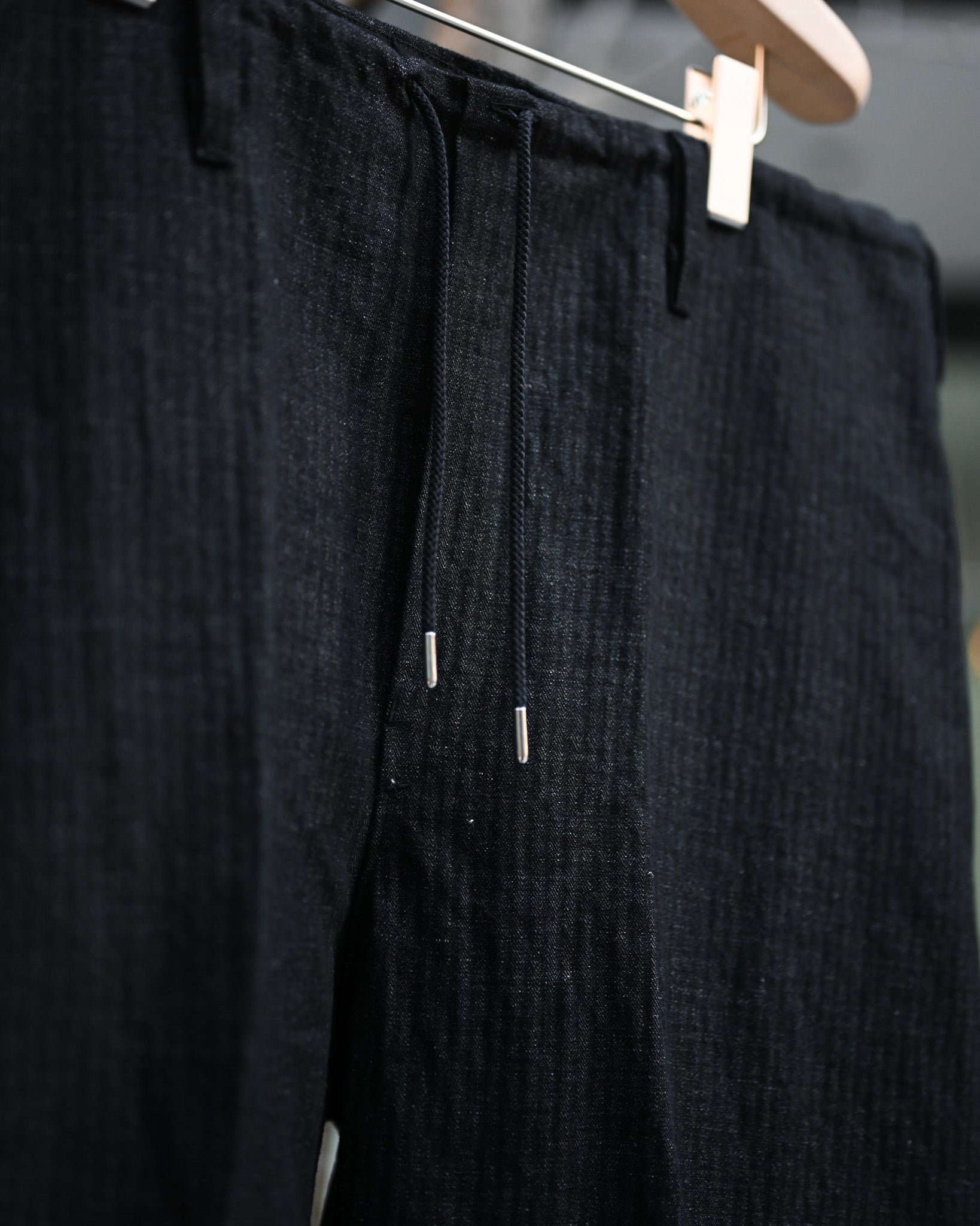 縦糸にコットン、緯糸にリネン、それぞれの素材の魅力を引き出した絶妙な混率で織られたヘリンボーン。