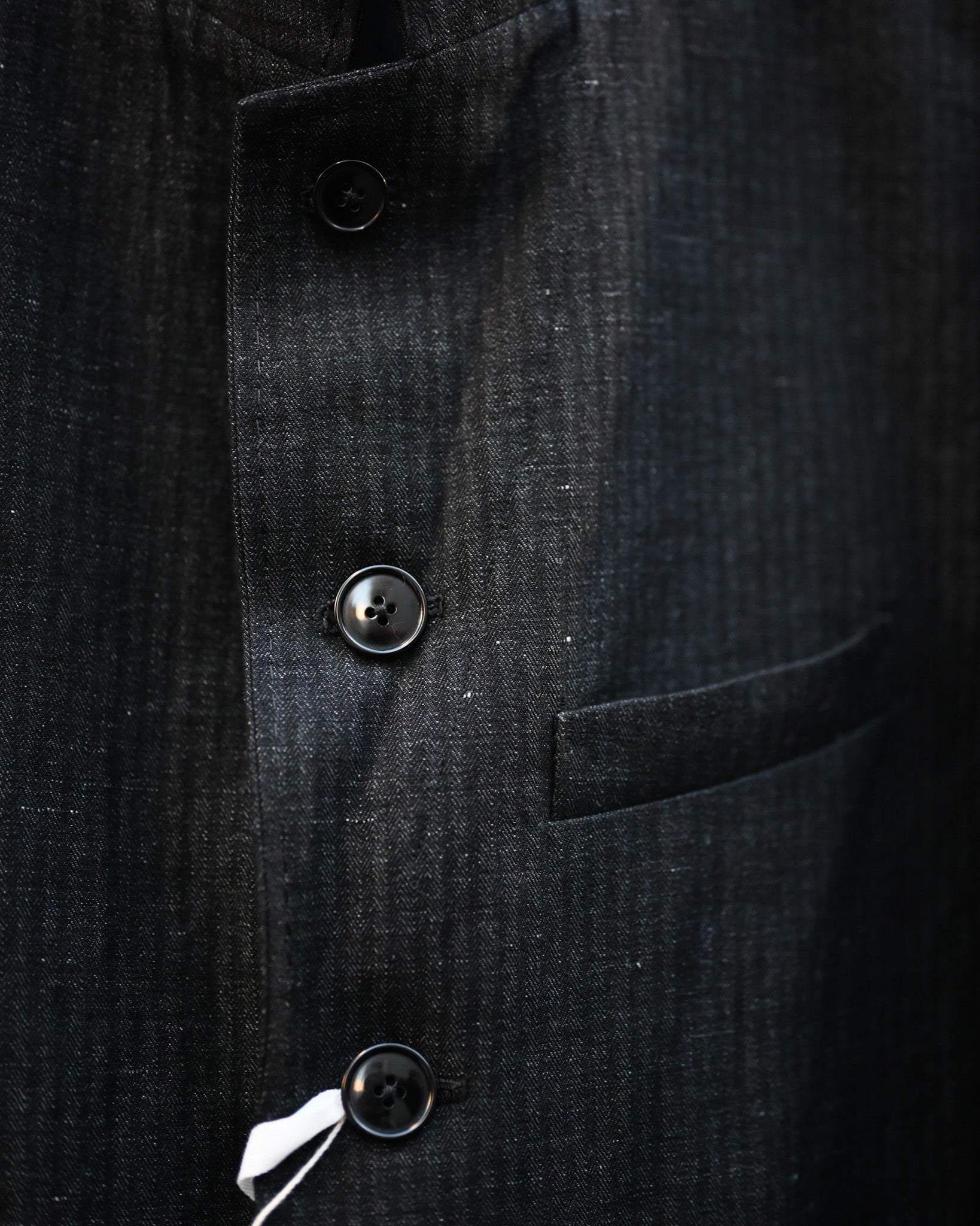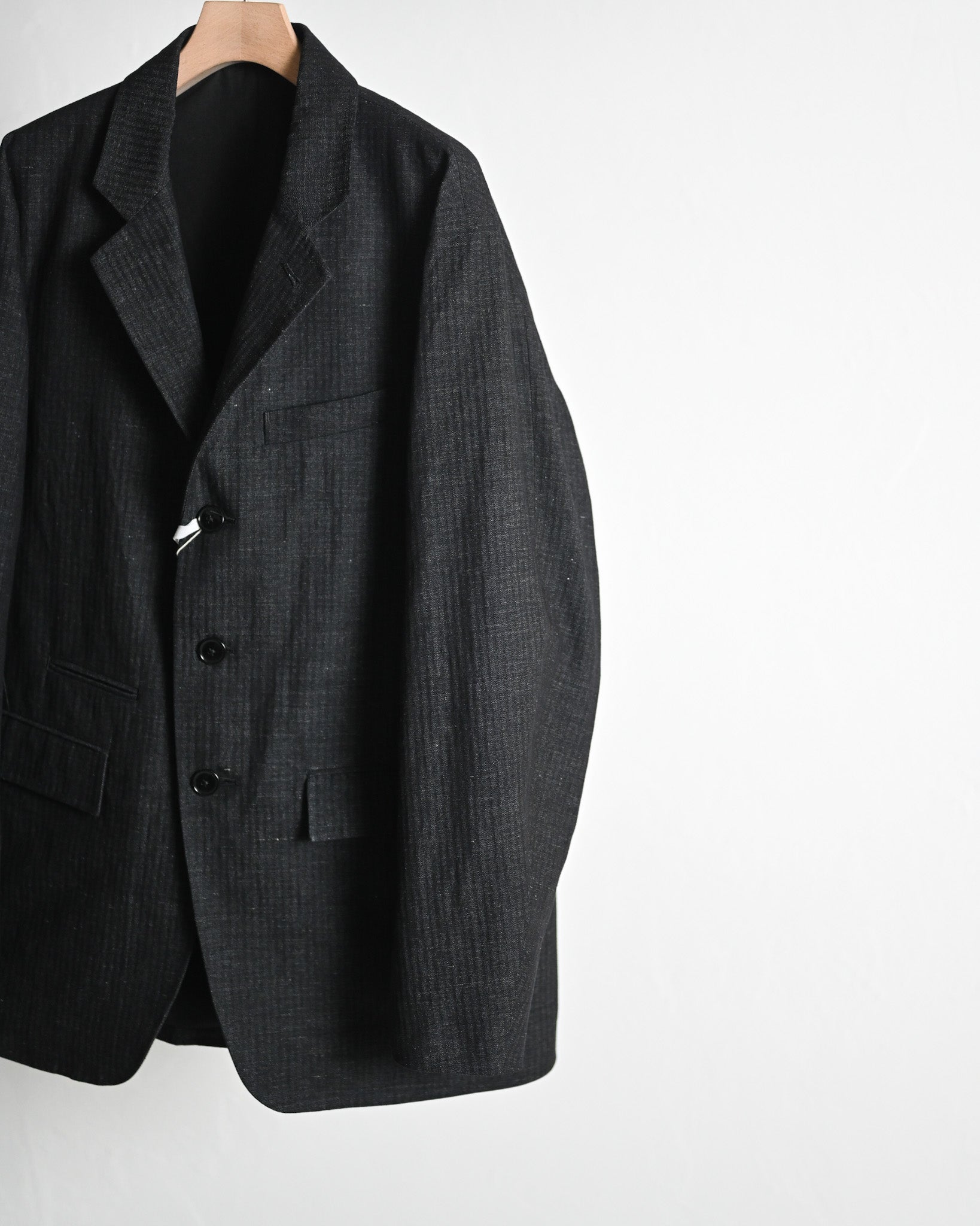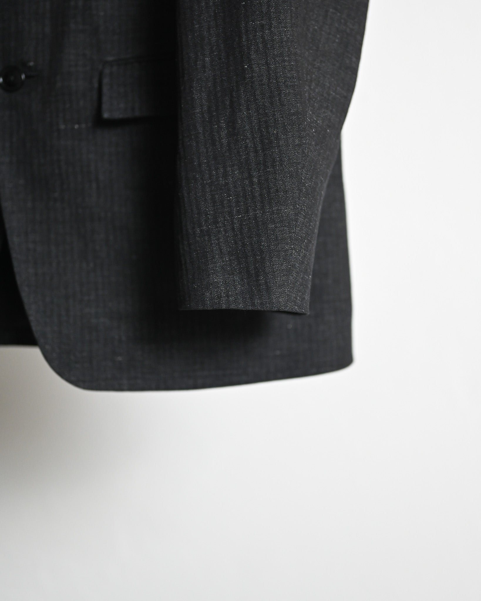 品格を感じさせる綿麻のヘリンボーン地で製作されたテーラードジャケット。