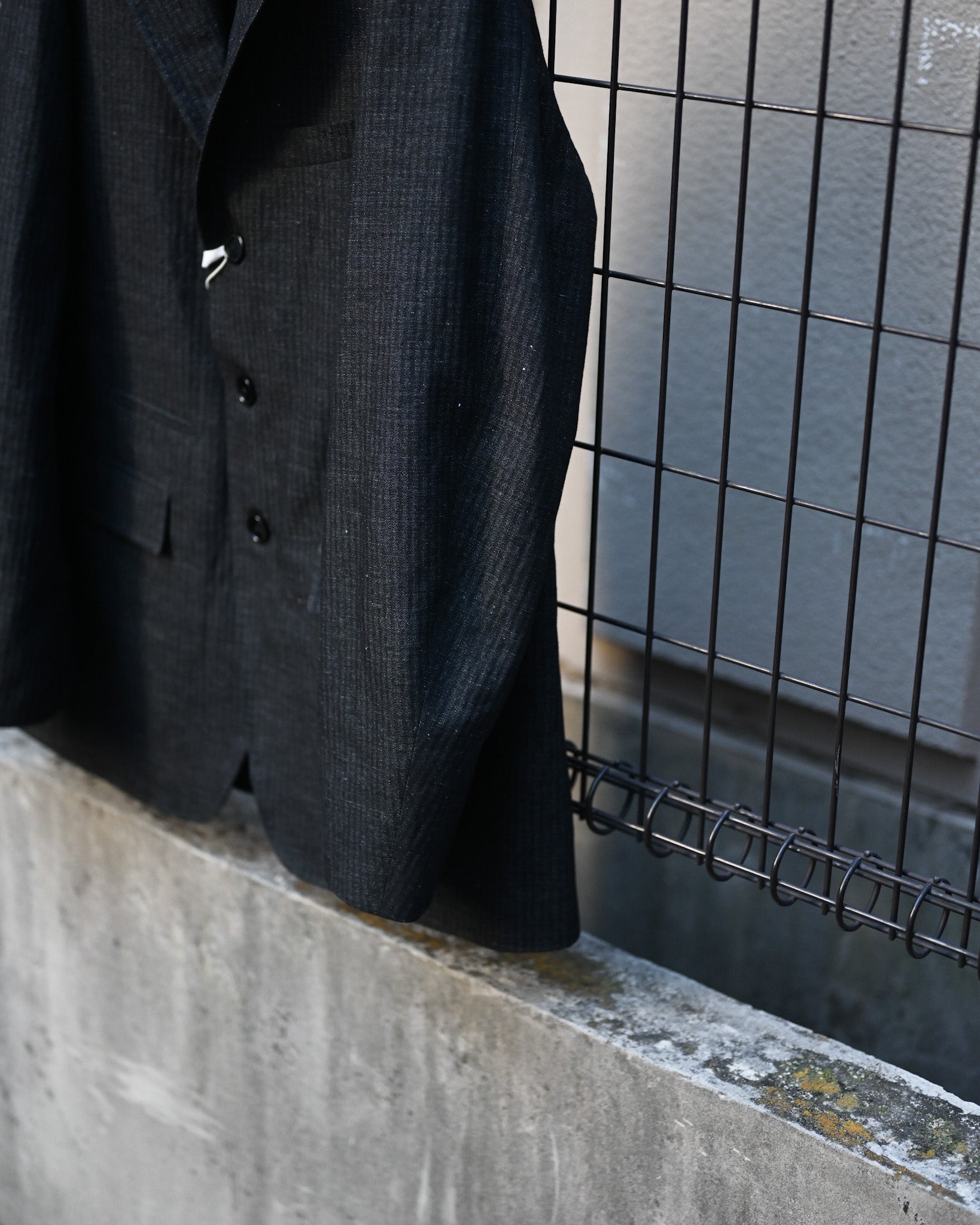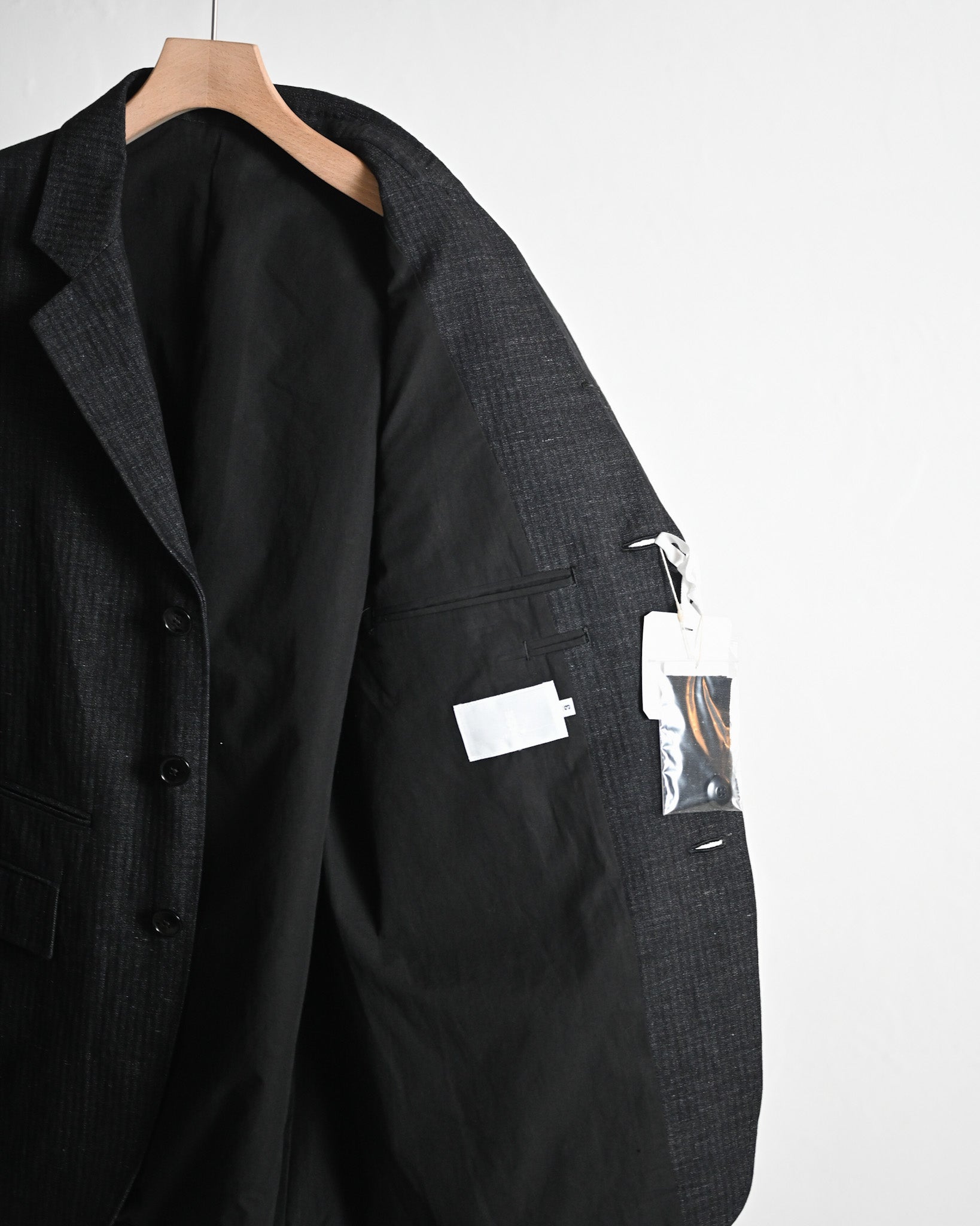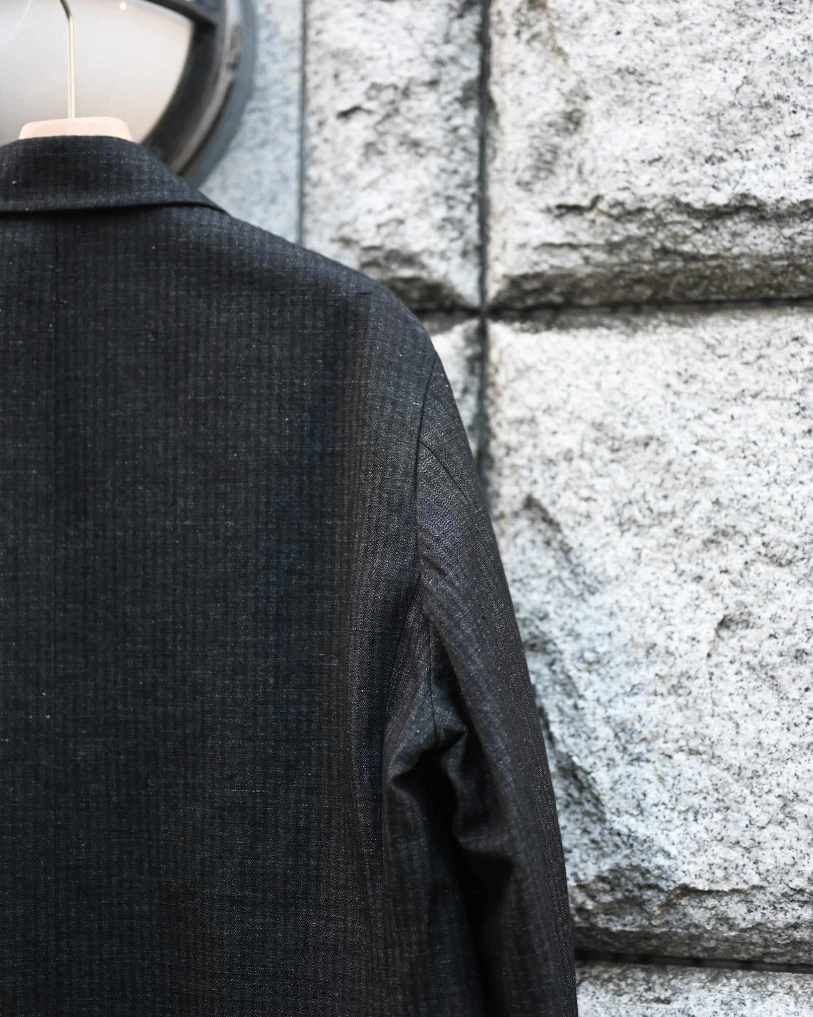 品格を感じさせる綿麻のヘリンボーン地で製作されたテーラードジャケット。
