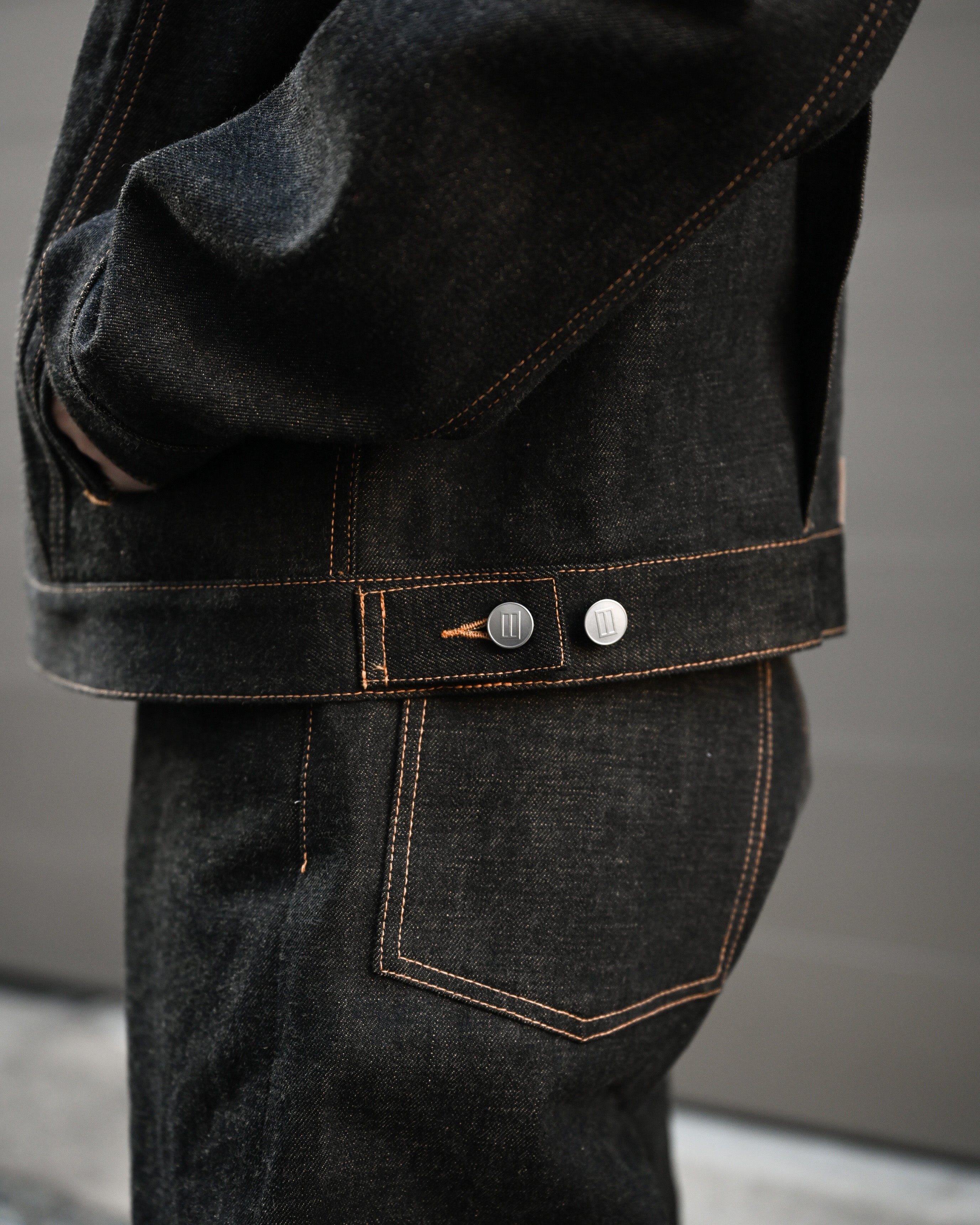 無垢鉄製のオリジナルボタンとアルミ製のリベットが完成度を高め、細部に至るまでの拘りが詰まっています。