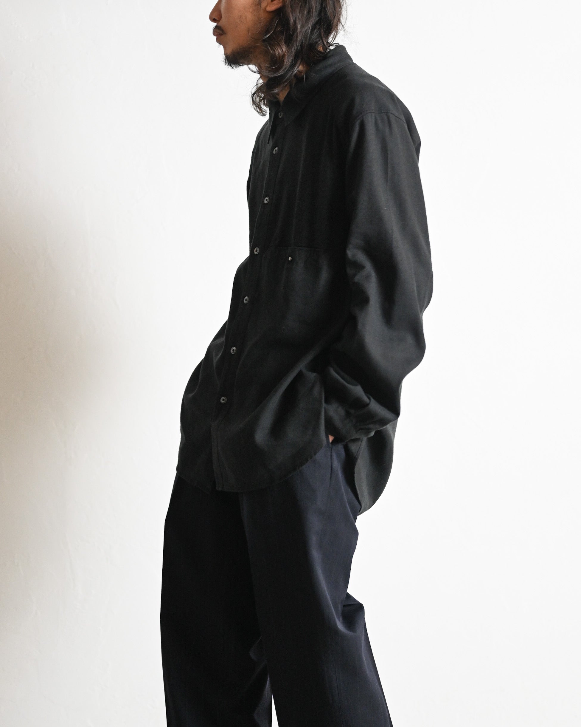 風合い豊かなシルクリネン素材で仕立てられたシャツ。